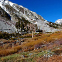 After Starlight I took my normal 3 days of rest, but as that came to an end 3-4 days of stormy weather arrived. I finally got a good day on Oct 5th and decided on a trip up Convict Canyon to Mildred and Dorothy Lakes. The extra effort to get up to the Dorothy lake is worth the effort as the view really opens up. The view of the north side of Red Slate and its appealling couloir is much better too. Even after all the rain, the notorious stream crossing at the old washed out bridge was quite casual. The trail itself may soon be a thing of the past as weather events have done tons of damage to what is a problematic trail to begin with. Still a fine day and well worth the effort.