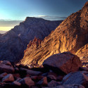 Early fall on the west side of the Palisades. Not a soul to be seen. Certainly one of the better chute routes on the west side. Some really fine sections to this climb.