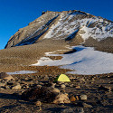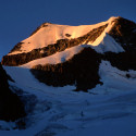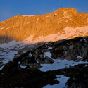 Second of several day climbs. Easy day climb as the distances involved are less. Interesting approach. Arrived at the lakes at sunrise and found a very reasonable way thru the big boulders above the last meadow. Climb was somewhat melted out at the top.