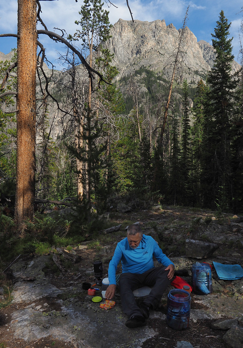 CHUCK AT OUR CAMPSITE PART WAY UP THE SWITCHBACKS ABOVE THREE FORKS PARK